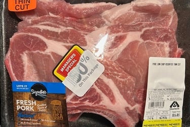 From the "Day Old Meat" section. When it hits the "Sell By" date, the butchers cat gets it. OR they sell it cheap! $3.75 out the door.