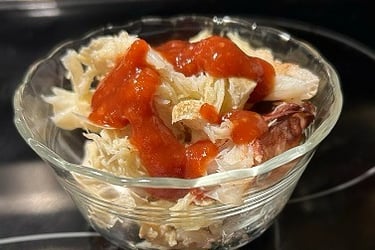 I was going to make Crab Cakes but the crab (Dungenes) was too good for that. Just a dash of cocktail sauce...